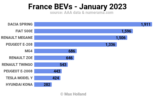 If I had to place a bet this early in the year, I think the Renault Megane is still the favourite to take the annual title, but much of that is on the strength of Renault prioritizing deliveries of this model into the home market. Let’s also see how the new Peugeot e-308 will do once it is released in the next couple of months.